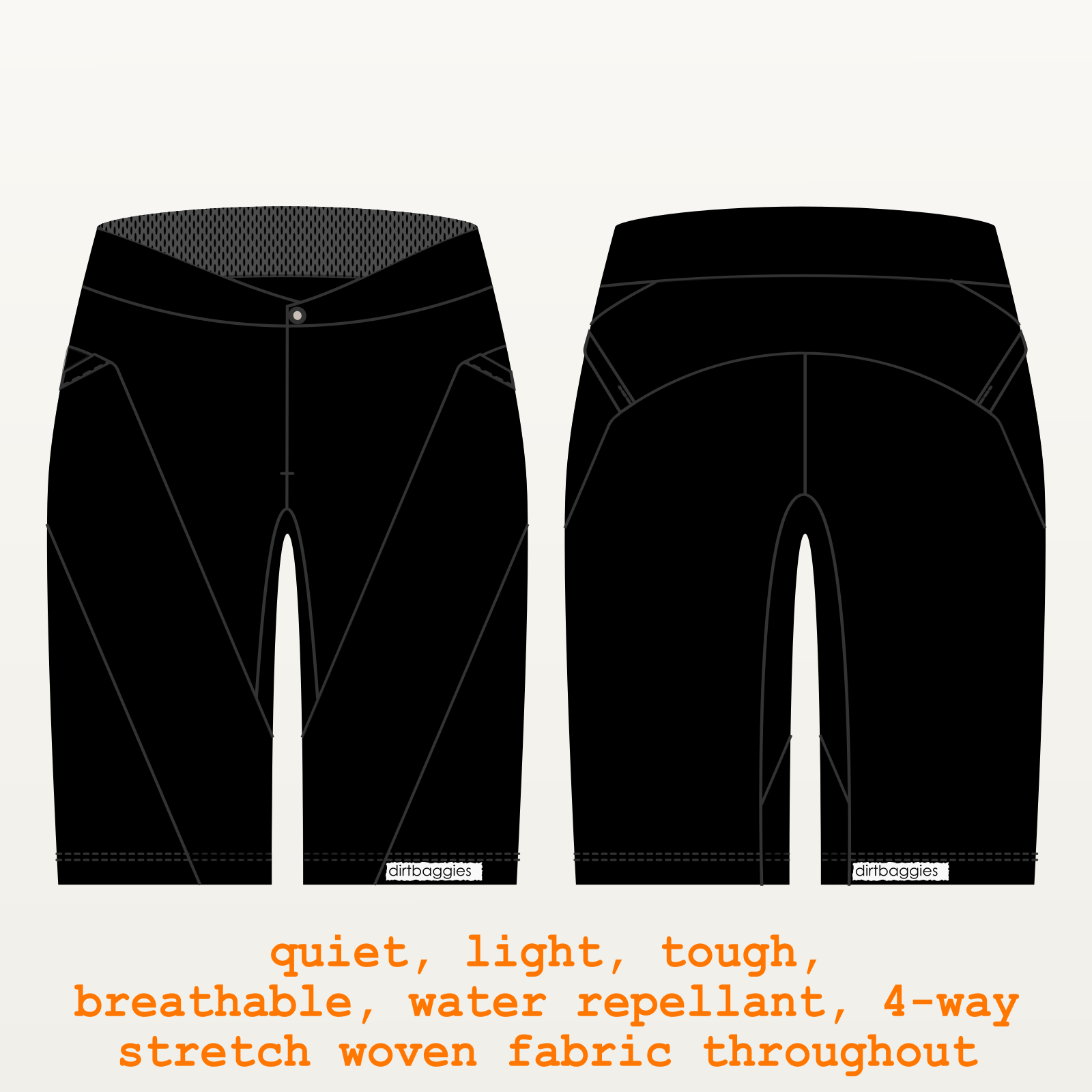 BLOCK has no vented panels - it is constructed of quiet, light, tough, breathable, water repellent 4-way stretch woven fabric throughout.
